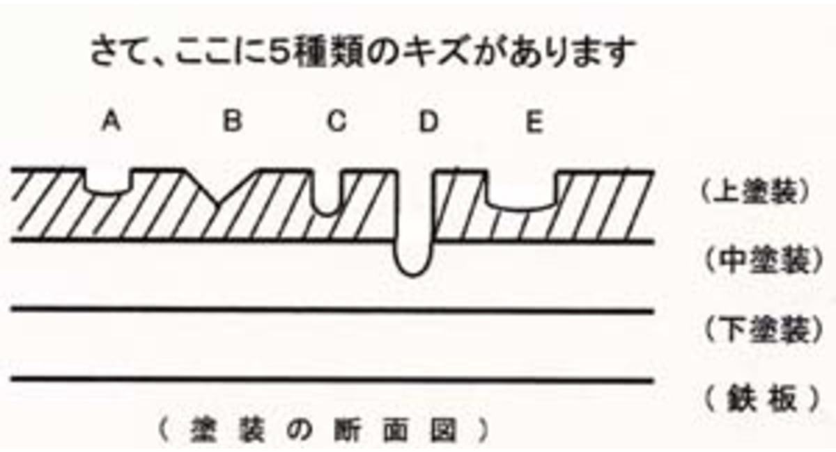 塗装の断面図でいえば、Dタイプのハガレで下地が見える状態でした。