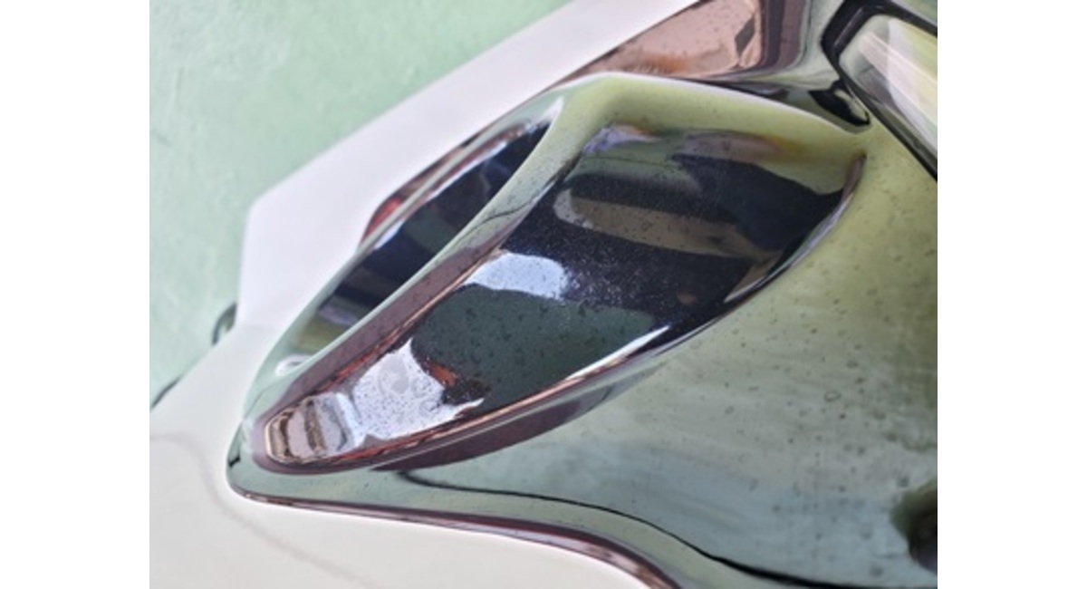以外に手入れで悩むのがメッキの汚れ(水あかや水シミ)ですが、なかなか良い手入れ方法が見つからないパーツ。除去は溶剤で取り除きメッキ表面を磨いて仕上げますが、きれいにするだけで、ボディ全体が新車のように見えるものです。
