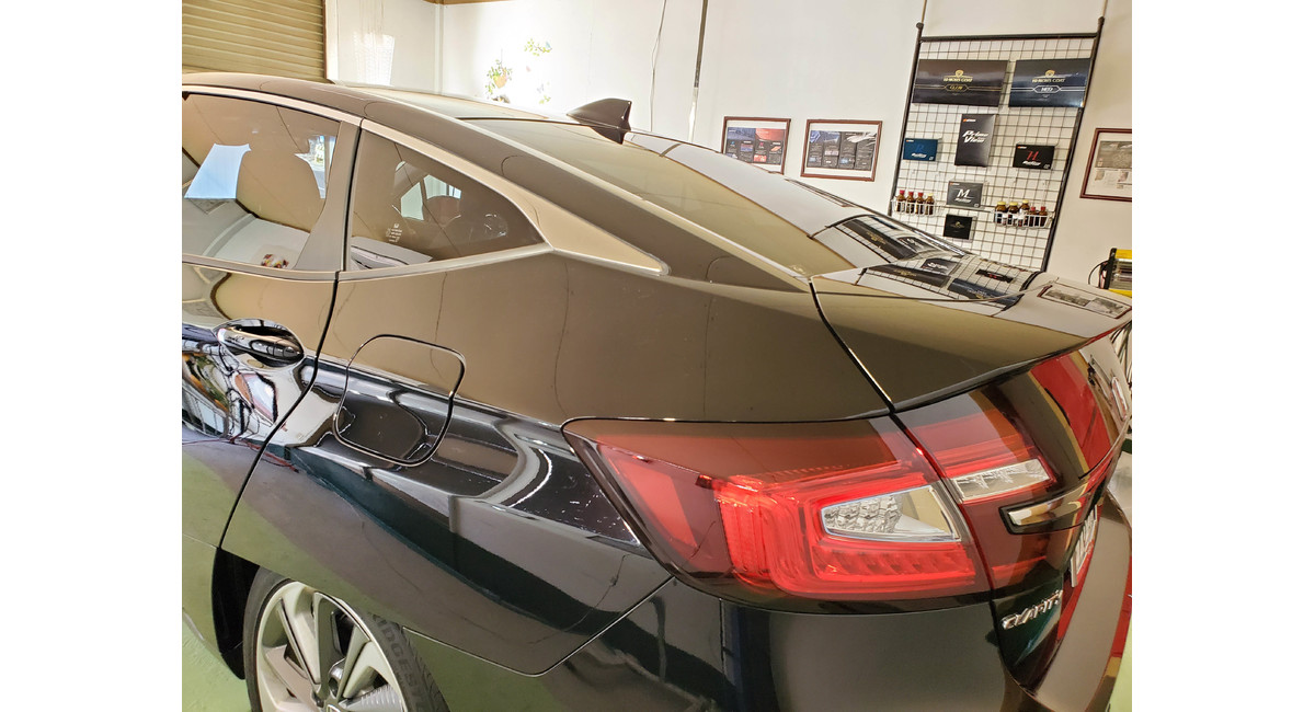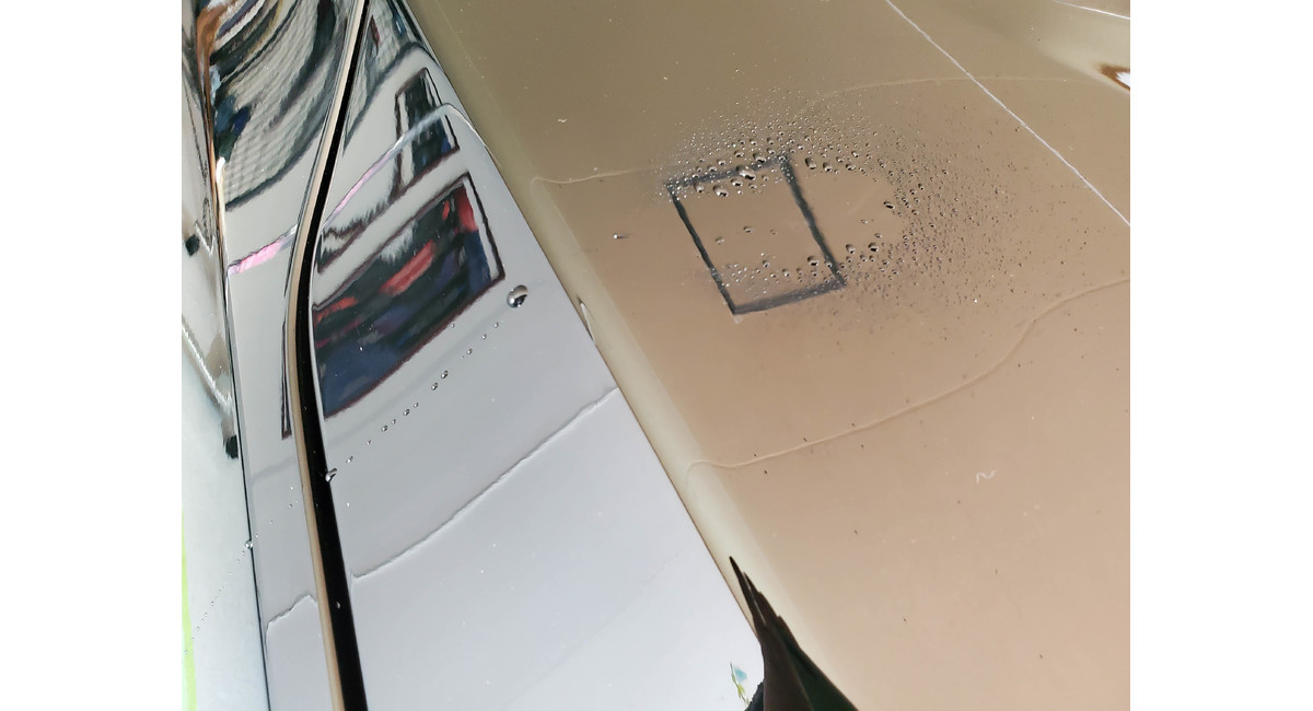 クリスタルブラック・パールカラーの維持で難しいのが、太陽光で熱を帯びると傷がつきやすく水シミができやすいこと。これはトヨタのブラック202も同じことが言えます。