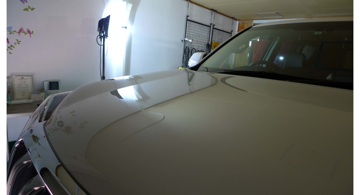 水あかがとれないと連絡を受けたプラドでしたが、水あかはメッキパーツだけに集中していて、ほかにはボンネットにわずかに鳥の糞シミ跡があるだけで洗車傷すらないほどきれいなボディに維持されていました。