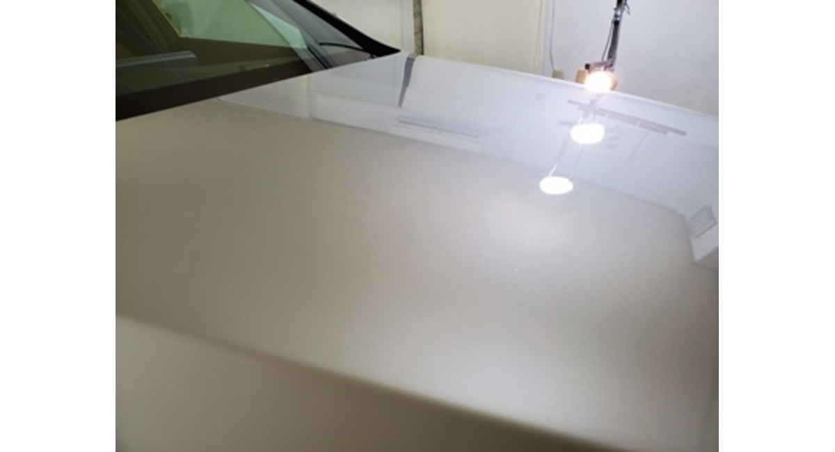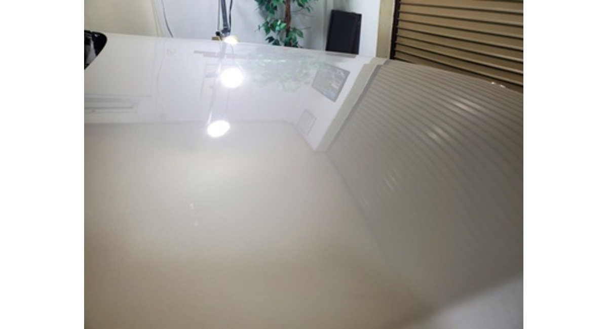 ご来店時のボンネットに写りこんだ照明が、何となくぼけています。その一部を拡大してみた画像です。