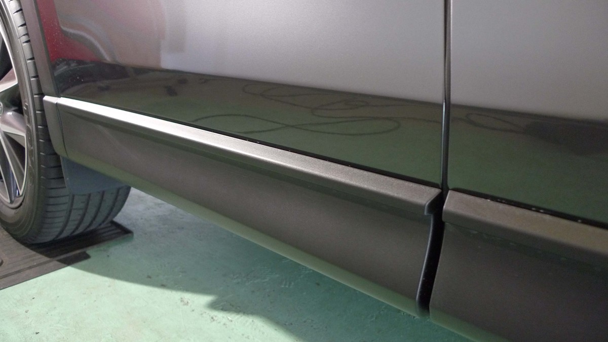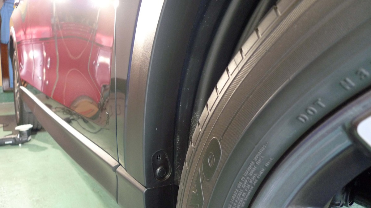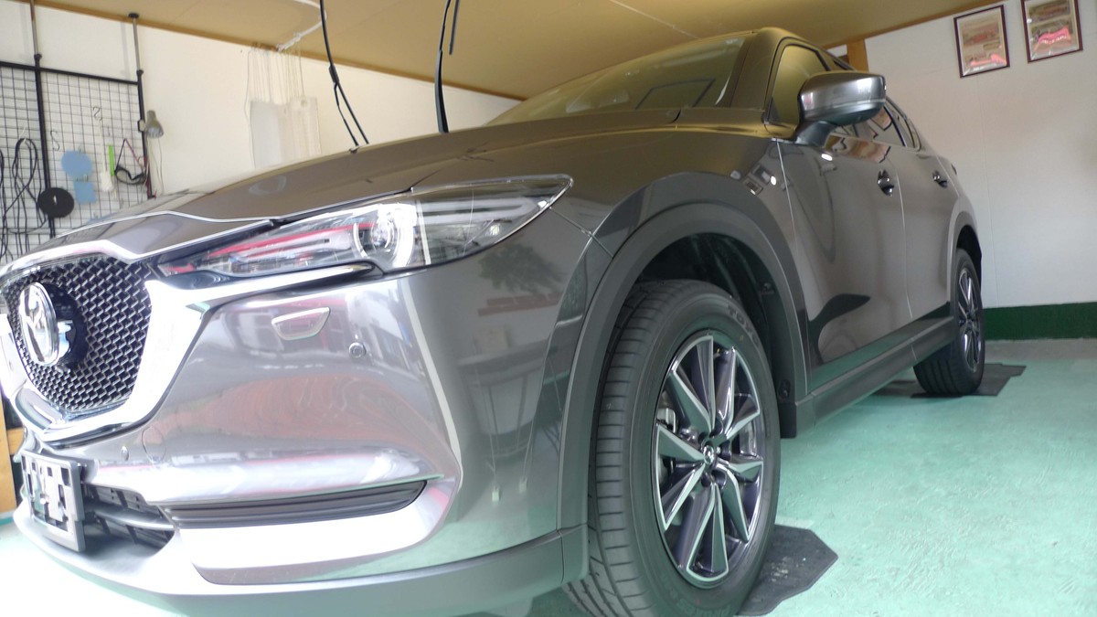 未塗装樹脂パーツの下地処理とコーティング施行が完成したばかりのCX5。