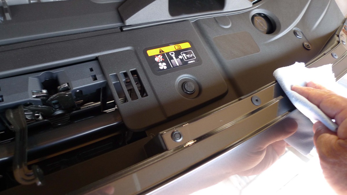 メッキパーツには、ドアウインドウ周辺はグランプレミアムを、そしてフロントグリルには親水タイプのガラスコーティングで仕上げてあります。CX5はエンジンルームの熱がなかなか冷めず、水シミができやすいためグリルにはあえて親水タイプで施工してあります。
