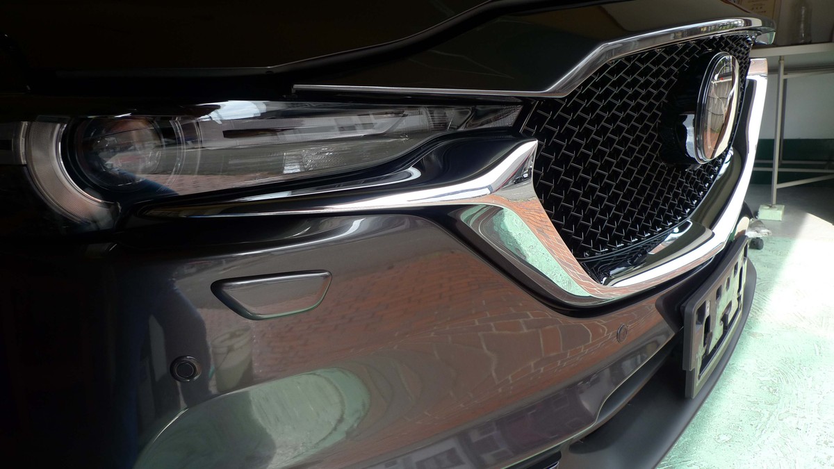 納車されてまだ2週間というCX5クリーンディーゼル4WDは、飯能市からご来店いただいたお客様です。未塗装樹脂の他にもメッキパーツやフロントガラスさらにホイールと一台まるごとコーティング施工です。ボディの塗装には、ガラスコーティングのバリアクリスタルグランプレミアムを施します。