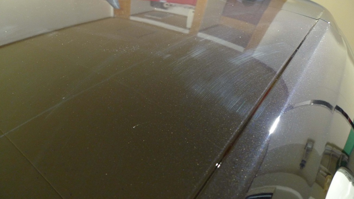 新車のボディでも、時々見かける洗車キズと補修跡